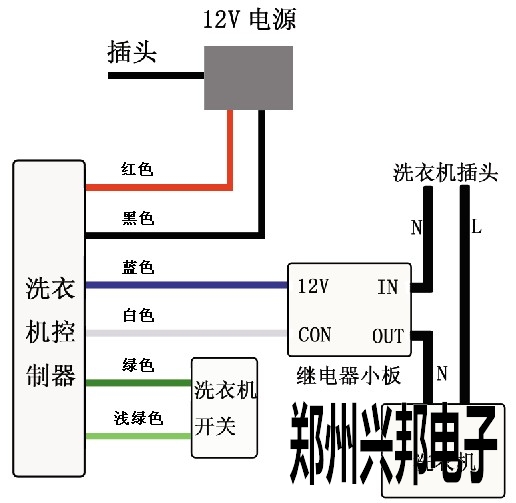 如果繼電器小板上有二極管,洗衣機控制上的白線接繼電器小板上二極管有白端的一端。