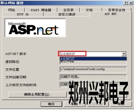2)查看默認(rèn)網(wǎng)站屬性中ASP.NET的版本,如下圖所示,必須是2.0.50727。