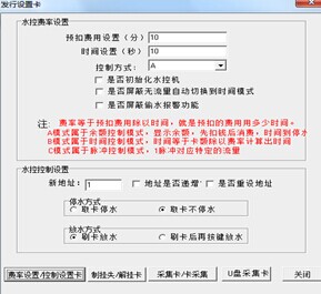 2、在水控費率設置框中 輸入扣費費率以及選擇好控制方式后,點擊左下角“費率設置/控制設置卡”按鈕,選擇“費率設置卡”按鈕。