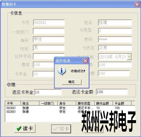 注銷卡就是收繳過的舊卡點擊【讀卡】出現卡片的基本信息后點擊【寫卡】,提示收繳成功后點擊【確定】即可。對于不用的舊卡可以使用此功能進行收繳,收繳一定要在數據采集完成之后進行。