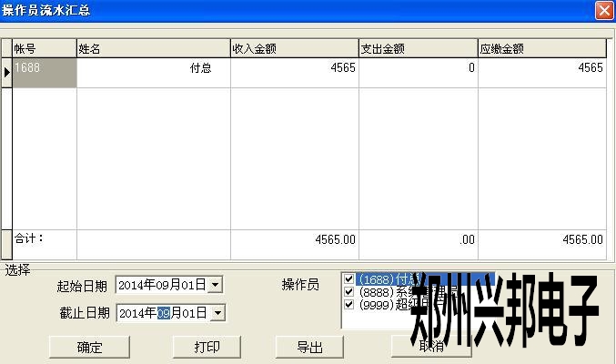 選擇好日期,點查詢。用當(dāng)天的收入減去支出就是當(dāng)天操作員應(yīng)繳的金額。