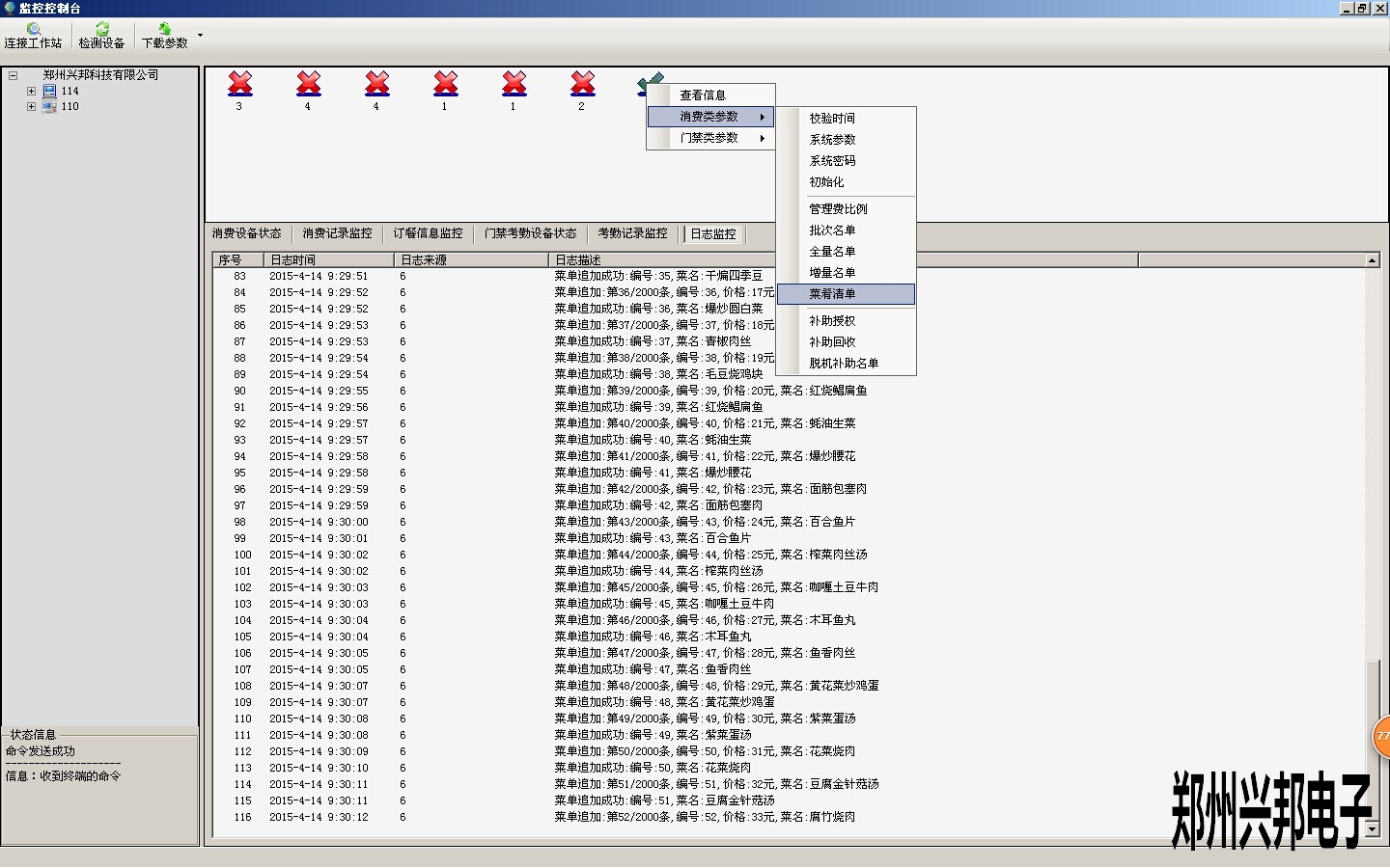 2.菜單添加完成后,需要將菜單通過下載參數的方法下載到消費機中,下載時需要將機器和軟件連通,下載方法如下圖所示:
