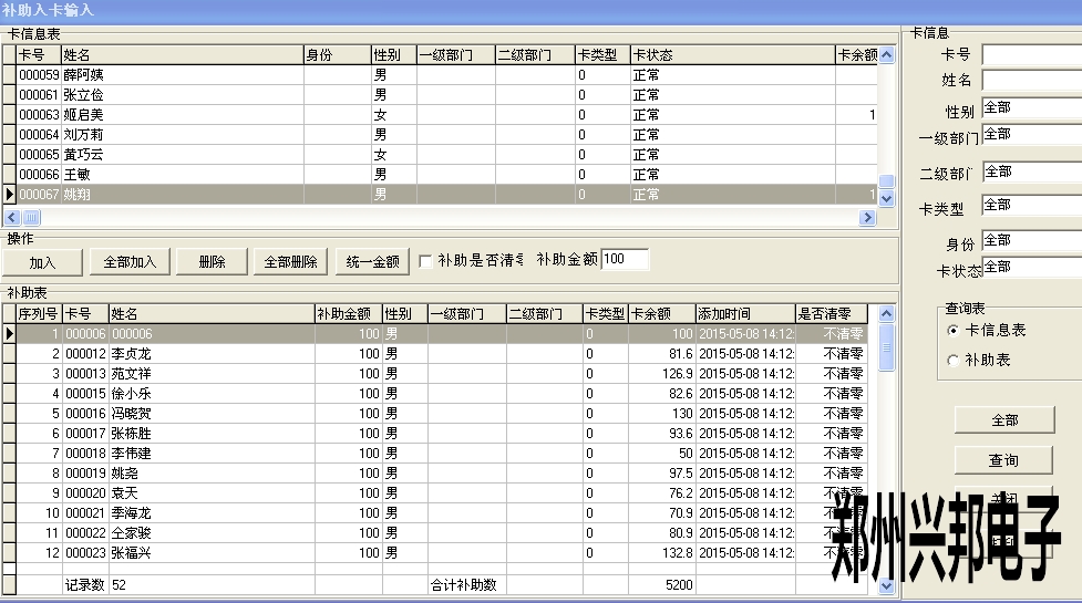 在卡管理--補助入卡--補助入卡輸入里面查詢。下面的補助表里的人都是現在還沒有領取補助的人員名單