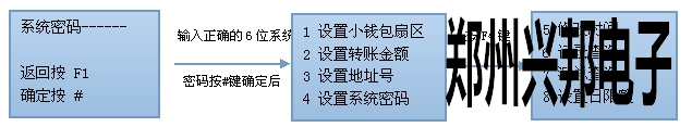 ①按1號鍵進入設置小錢包扇區號界面,如下圖所示,輸入要設置的扇區號即可;