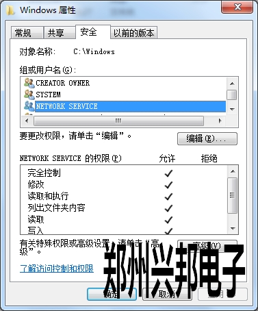 2、右鍵Temp文件夾--屬性--安全,添加一個(gè)用戶(hù)"NETWORK SERVICE ",(如果是.NET Framework 1.0 則添加用戶(hù)"aspnet user"), "賦予權(quán)限--寫(xiě)入