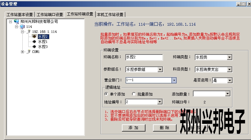 工作站端口設置完成后,在工作站終端設置中添加對應的終端即可,如下圖所示: