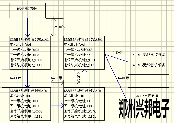 2、一個433MHZ無線通信器(WLA001)的無線覆蓋范圍為直經400米(空曠地區(qū));只要在收發(fā)的范圍內,可連接的終端設備的臺數(shù)理論上沒有限制;地址號9998、9999,終端設備不可用,系統(tǒng)使用;