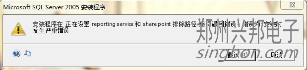 互聯網一卡通食堂售飯機的軟件,采集的信息都通過軟件設置存在數據庫SQL SERVER2005中,所以安裝軟件,首先要安裝數據庫SQL SERVER2005,但在安裝數據庫SQL SERVER2005時,安裝程序可能會在正在設置reporting和shre point 排除路徑 期間遇到錯誤,遇到的錯誤如圖所示: