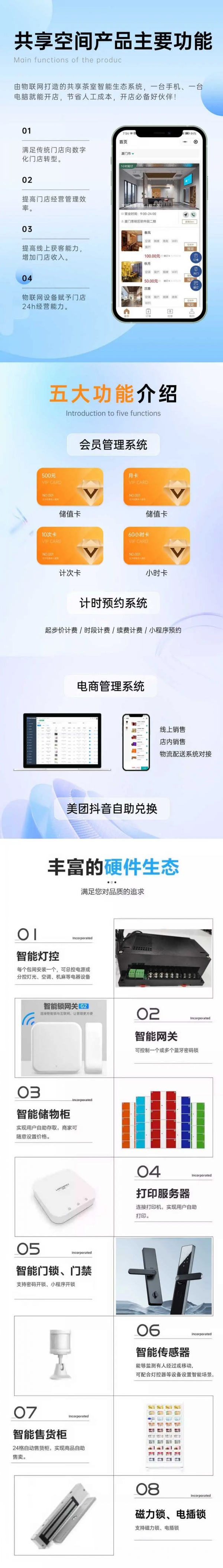 智能門鎖、智能音箱、智能電源的應(yīng)用,打造無人值守模式,節(jié)省門店運營成本。